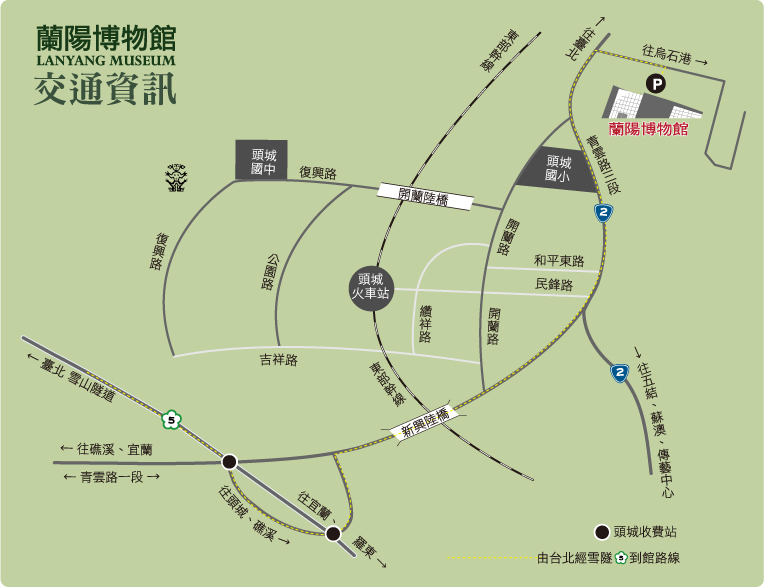 :搭乘東部幹線火車至頭城站下車,往烏石港方向步行二十分鐘,即可到達蘭陽博物館。